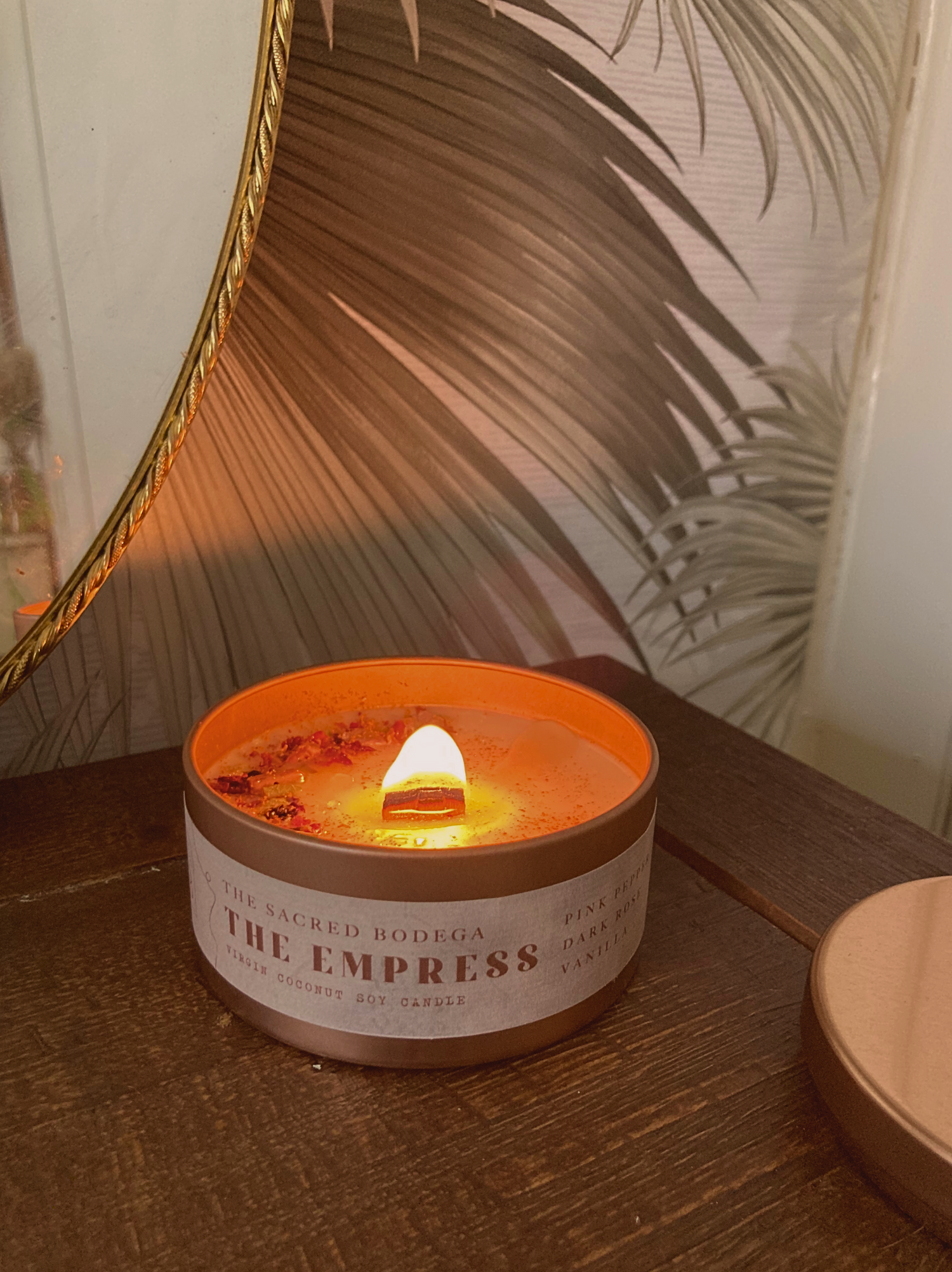 Introducing The Sacred Bodega, where luxury scent meets space + spirit. We intentionally craft home fragrances that are designed to enhance the energy of your space + daily rituals. Our mission as a brand is to create a one-of-a-kind sensory healing experience to aid in your unique healing journey. Discover what makes our eco-friendly and non-toxic candle scents pure magick!